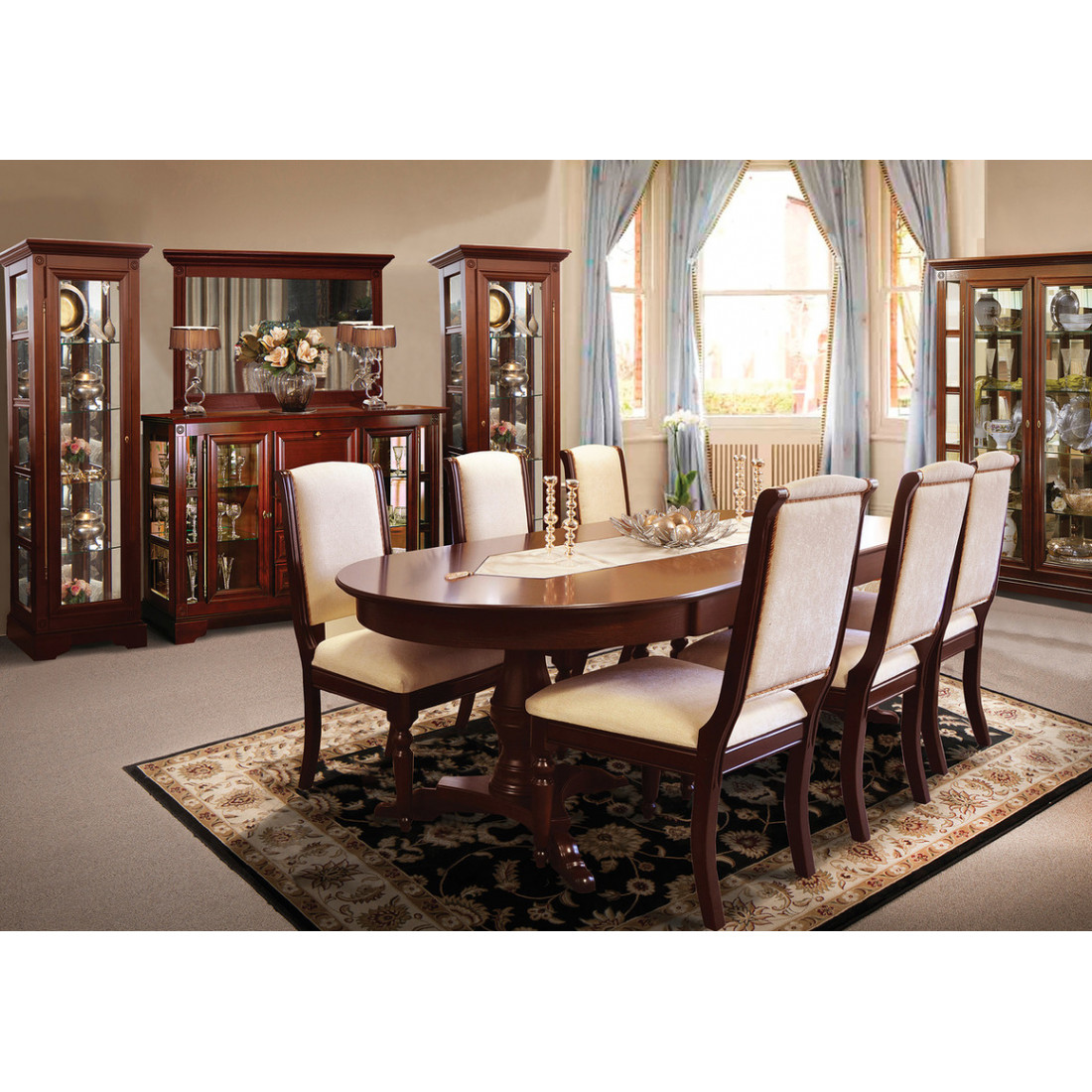 Фурнитура: замок штанговый фирмы «Titus» (Польша), лицевая фурнитура «Metakor» (Бельгия), ящики на шариковых направляющих фирмы «Blum» (Австрия), механизм раздвижения столов ММ-174-41, ММ-174-41 с декором, ММ-174-41/01, ММ-174-41/01 с декором «Siso» (Дания).