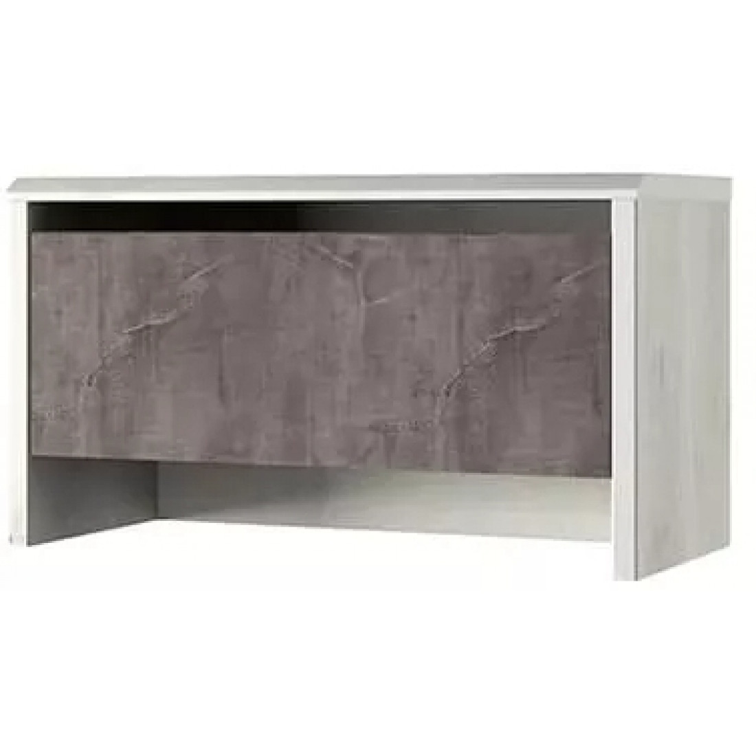 Тумба для обуви Бьёрк 1D — предмет современной коллекции в стиле Loft, где все элементы мебели выполнены в декорах ольха полярная и оникс с использованием уникальной структуры плиты.